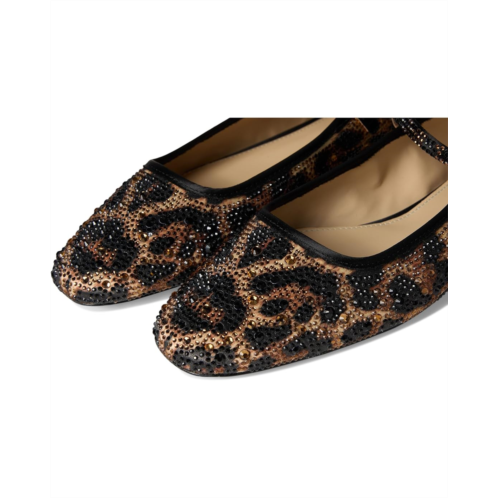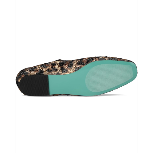 - The Blue by Betsey Johnson Lorel ballet flat is a special pick, featuring a glam rhinestoned leopard leather upper. These square-toe flats are crafted with a polyurethane lining and rubber insole. Plus, the adjustable strap and buckle closure ensures a secure fit.