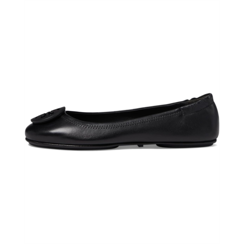 - The Tory Burch Minnie Travel Ballet w/ Logo flat is crafted in super-soft napa leather, featuring a brand logo detail, and a packable design that makes traveling in style a breeze.