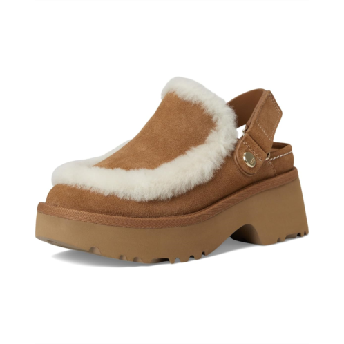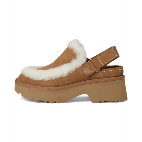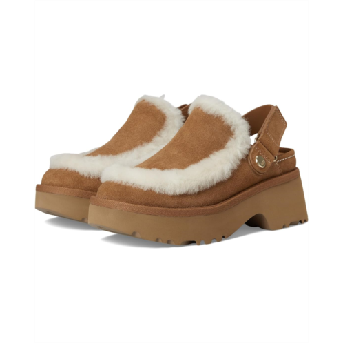 - Evolution is a way of life, and the Heritage details have taken on a new form choosing the UGG Esmee Clogs. Designed with comfort so plush you can see it, it has a genuine suede upper and a lush sheepskin spill seam. Slip into the comfort of the lamb leather footbed and secure your fit with the adjustable heel strap, or swivel the strap to the front for backless clog comfort. Finished with a block heel made from lightweight EVA for effortless support.