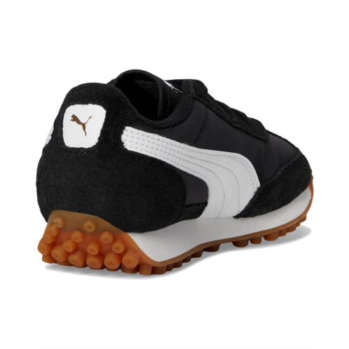 - With its classic slim profile and vintage vibes intact, the PUMA Kids Easy Rider Sneakers boasts a truly timeless silhouette. The low-top sneakers feature a mixed textile upper with synthetic leather overlay, Suede overlay on toe and vamp, leather lining, and :ethylene vinyl acetate insole. While the suede heel comes with synthetic leather underlay, the debossed and printed puma branding, synthetic leather formstrip, and foil printed puma branding on quarter give the look an authenticity. The lace-up closure on the sneakers is designed for easy adjustability.