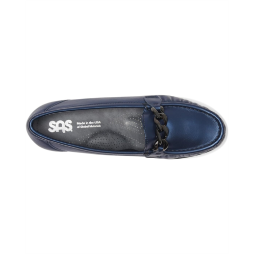 - The SAS Metro Link Comfort Loafers are an update to the tried and true Metro loafer with a bold new link chain to make a fashion statement. Metro Link has all the comfort ingredients the Metro is known for, genuine moccasin construction and Tripad cushions for extra comfort and support. The genuine leather upper and hand laced moccasin construction wraps soft supple leather completely around your foot and allows great flexibility. Removable SAS Comfort Footbed provides a shock-absorbing, removable foam cushion for a comfortable layer that contours to the foot from heel to toe. SAS's Tripad material cushions the three pressure points of your foot including the inside ball, the outside ball, and the heel with shock-absorption meant to last all day. Millions of tiny air bubbles in SAS molded polyurethane outsole provides shock-absorption and cushions each step.