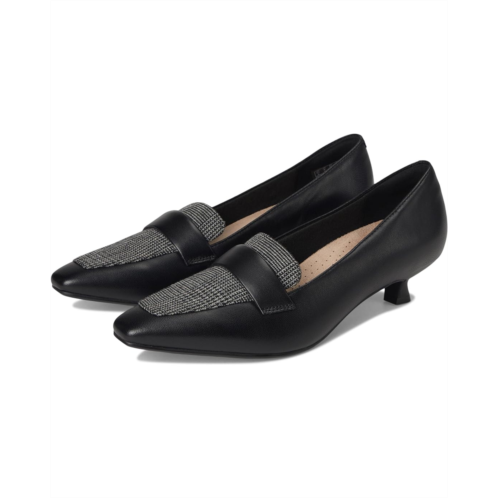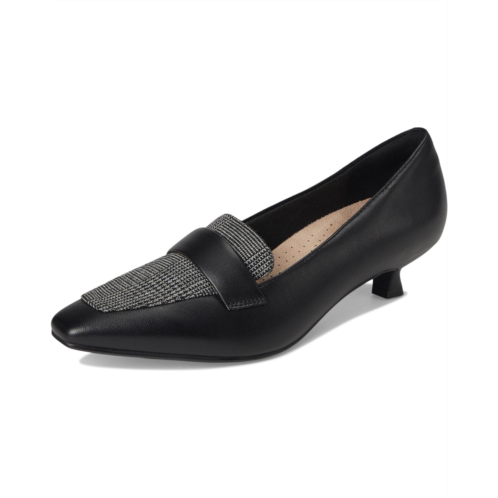 - The Clarks Scarlyt Mabel Loafer has the must-have dress silhouette of the season! Crafted from premium materials, this smart design features a chic square toe shape and sleek kitten heel, inspired by Clarks Collection Kepley and Kataleyna families. The loaferkorea heel features a premium leather upper, breathable microfiber lining, and an Ultimate Comfort foam footbed that delivers lasting cushioning. And, with an easy-wear low heel and slip-on style, it perfectly complements this season's trending trouser silhouettes.
