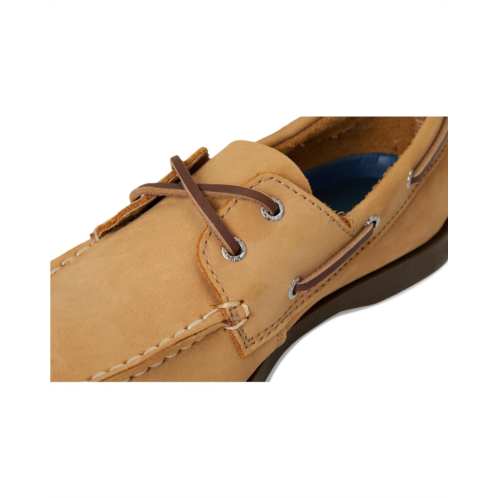 - Genuine rawhide lace-tie closure for authentic boat styling.