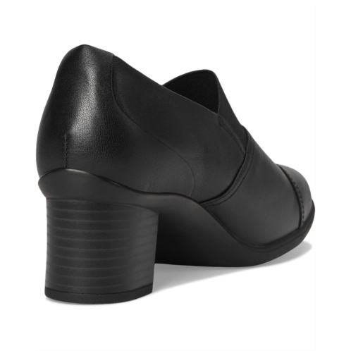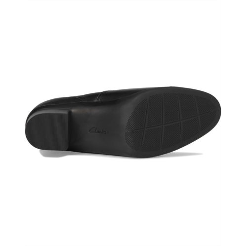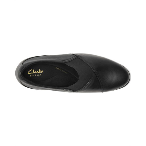- Comfort and versatility come together to create the timeless Clarks Shaya Tess Shoes. Crafted from premium leathers, it features a supportive block heel and a removable molded Contour Cushion footbed that offers unrivalled underfoot comfort. The premium black leather upper comes with elastic side panels that maximize easy foot entry and lend an accommodating fit. The classic, easy-to-wear almond toe shape allows versatile styling, while the durable rubber outsole with a curved side allows for a dynamic look and excellent grip.