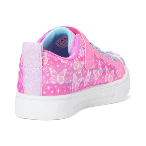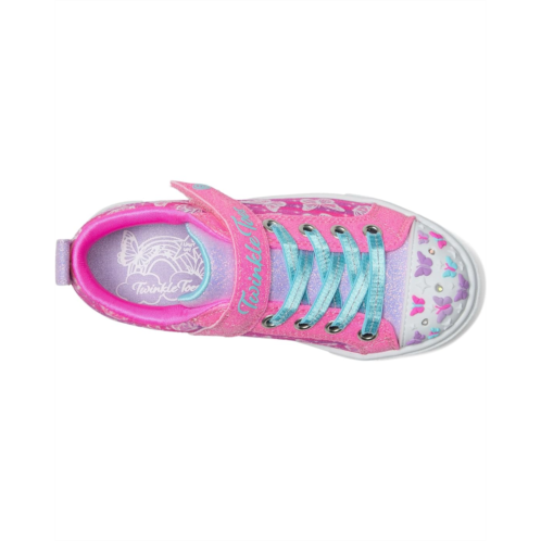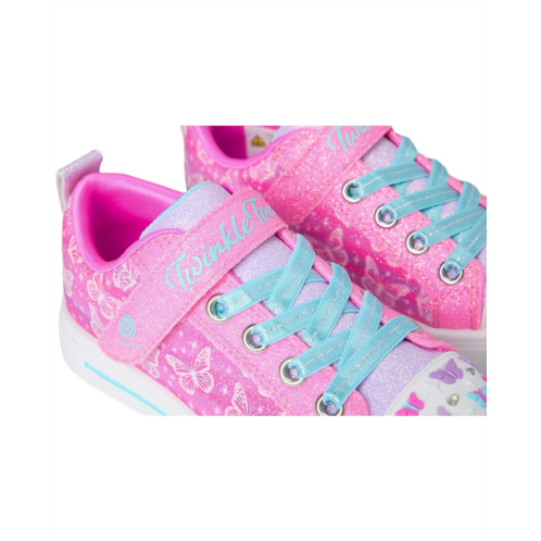 - Shine bright with magical twinkles and glittery butterflies! Sparkle your night in Skechers Kids Twinkle Sparks 314813L - Ombre Flutter. Featuring a canvas upper, EVA insole and outsole, and a cozy nylon lining, these sneakers ensure all-day comfort. Adaptive closure with stretch laces and an adjustable instep strap provide a perfect fit, while the round toe offers extra space. Watch the twinkle toes light up with every step, and enjoy the added fun of a light button in bigger kids' sizes.