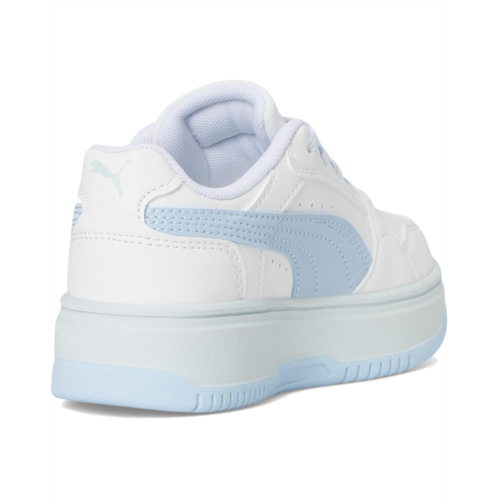 - This season, PUMA introduces the Rebound Femme Shoes. This new silhouette gives classic basketball kicks a twist, with bold color-blocking at the upper and well-finished tooling. These shoes feature a fashion-forward platform rubber outsole that not only adds a fashionable edge but also provides the stability and comfort you need to stay on your feet comfortably throughout the day. They utilize PUMA's SoftFoam+, a step-in comfort sockliner designed to provide soft cushioning thanks to its extra-thick heel. These platform shoes are made of a rubber insole and a polyester lining. The synthetic leather upper, along with a durable cupsole tooling, ensures a comfortable and supportive fit. Their upper is made with at least 20% recycled material. Recommended for young kids between 4 and 8 years, these lace-up sneakers offer a trendy look while ensuring a supportive and cushioned experience for all-day wear.