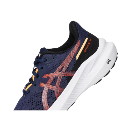 - The ASICS Kids Gt-1000 13 Grade School shoes are versatile stability trainers that are functional for various distances. They have updated the underfoot cushioning to make them feel more comfortable and energetic. A kid-specific last and a sockliner size checker help to accommodate growing feet, while the breathable mesh upper offers a supportive and comfortable foothold. At least 20% of the shoe's main upper material is made with recycled content to reduce waste and carbon emissions. Their polyester insole and lining provide added comfort. Additionally, the medial forefoot wrap-up synthetic rubber outsole and toe rubber stitch are designed to improve durability. Lastly, the GEL technology of these lace-up shoes provides comfortable cushioning throughout the day.