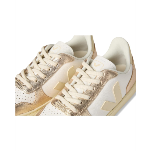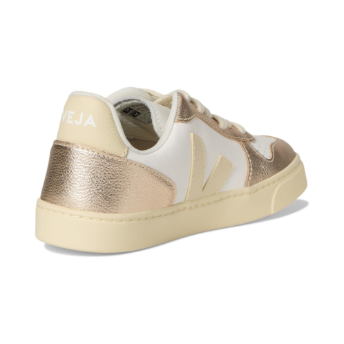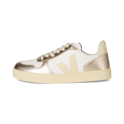- Add a magnificent vibe to your little one's feet with VEJA Kids Small V-10 sneakers, designed with hook-and-loop closure, webbing pull tab on the heel counter, and suede and chrome-free leather upper. The brand detailing on the sides, tongue, and footbed offers a solitary glance.