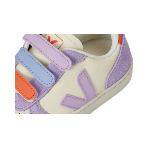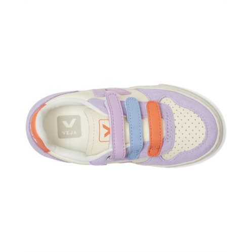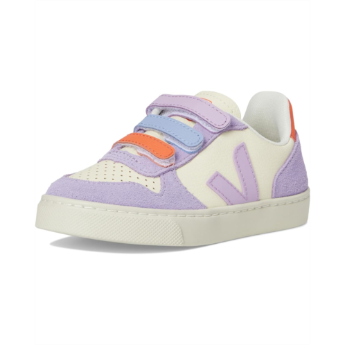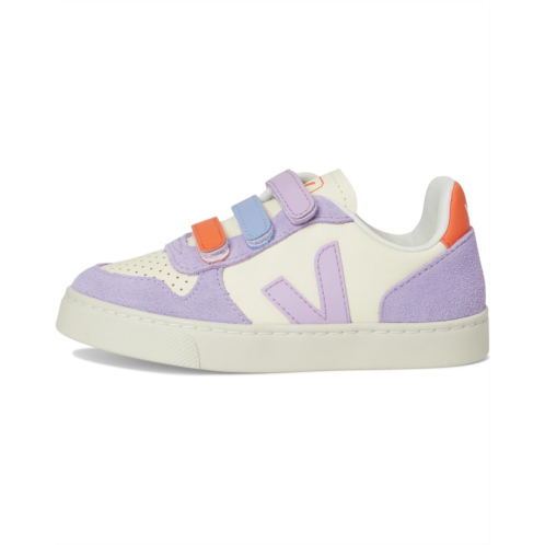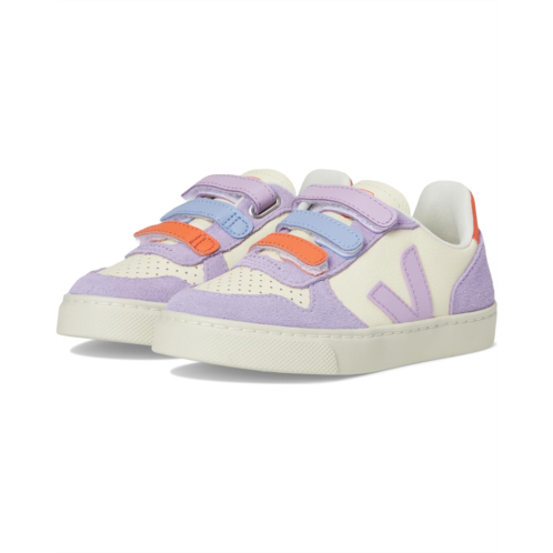 - The VEJA Kids Small V-10 effortlessly blends mindful design with everyday function. Designed with little trendsetters in mind, this sneaker brings a timeless silhouette crafted from supple bovine suede leather that feels soft, flexible, and ready for everyday adventures. The triple hook-and-loop closure ensures a secure fit, while the classic round toe adds all-day comfort. Inside, a cozy polyester lining wraps feet in ease, and a sturdy rubber insole and outsole provide the traction and durability needed for school days, playground runs, and weekend outings.