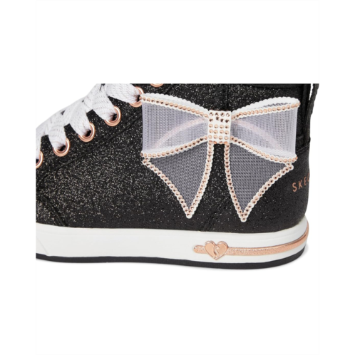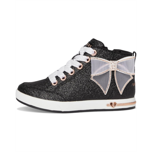 - Sparkle and shine styling SKECHERS KIDS Shoutouts 2.0 310640L. Built with a durable PU upper and outsole and soft cotton lining, these high-top sneakers are made for all-day wear with effortless flair. The glittered upper and rhinestone bow detail bring the sparkle factor, while the lace-up closure with medial zipper makes getting in and out a breeze. A cushioned EVA insole delivers all-day comfort, so every step feels as good as it looks.