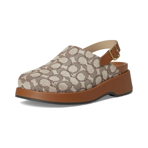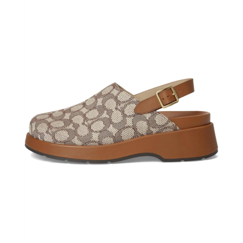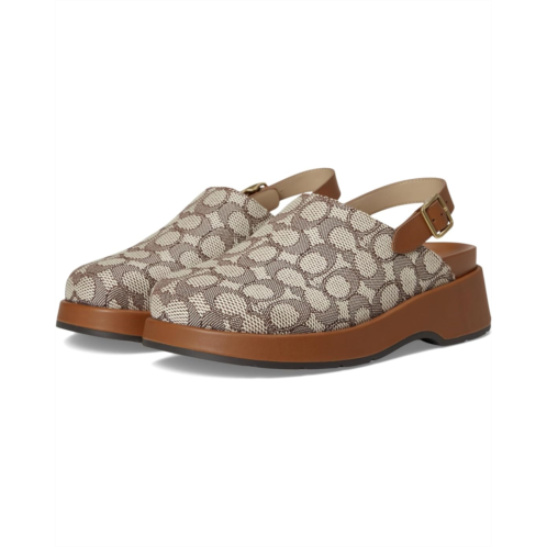 - The COACH Sculpted C Platform Clog In Signature Textile Jacquard is wrapped with embossed signature detailing and smooth leather accents. The adjustable slingback buckle ensures a secure fit. Designed for comfort and impact, it includes a padded footbed and durable rubber outsole.