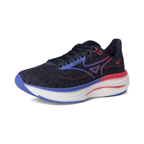 - Run wild and ride smooth, sporting Mizuno Wave Rider 29. Featuring a breathable jacquard mesh nylon upper and a stretchy gusseted tongue, this runner wraps your foot in a hug that moves with you. The game-changing Mizuno Enerzy NXT midsole maximizes energy return and plush cushioning, so every run feels lighter, faster, and more powerful. MIZUNO WAVE plate disperses impact evenly, delivering unbeatable stability and smoother transitions. Inside, a soft polyester lining and EVA insole keep things cozy, while the X10 carbon rubber outsole offers unbeatable durability and grip for miles on end. A secure lace-up closure locks in your fit, no slip, all stride.
