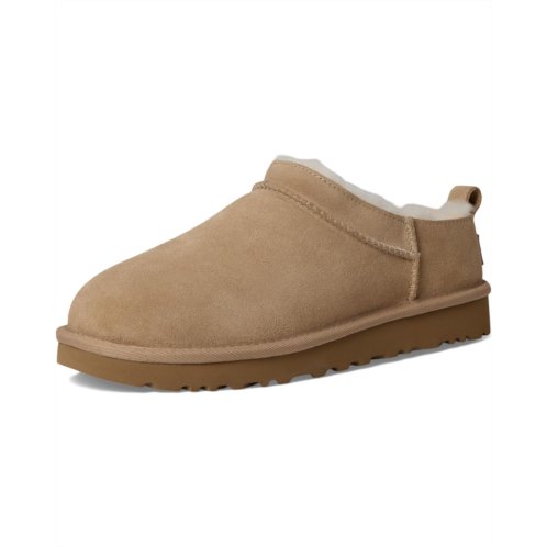 - The UGG Classic Micro boots reimagine the fan-favorite classic boots with a new, low-profile design (and high-profile comfort). They have a genuine suede upper lined with soft fur lining and an insole that naturally regulates temperature, so you can wear socks - or not. Their lightweight sugarcane ethylene vinyl acetate outsole delivers effortless support and adds that easy slipper feeling to every out-of-the-house venture. These slip-on boots feature textile binding made from 100% recycled polyester fibers. Styled with a woven label with the UGG logo on the insole and a UGG-logo-embossed leather heel label, these ankle boots keep your feet comfortable, warm, and protected. While the Micro retains the strong DNA of the Classic boot, it's fit will be closer to that of a Tasman than a Classic boot.