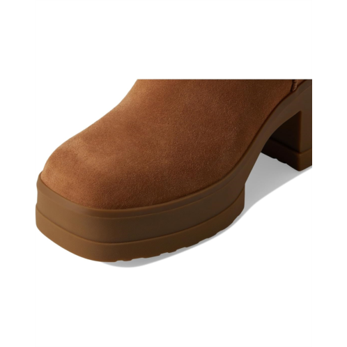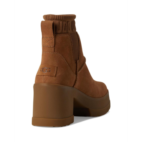 - If you love our Brooklyn boot, you'll adore the UGG Moxy Chelsea. It delivers the features you love about the Brooklyn like the chunky lug sole, Twin Seam details, and The Graphic UGG Font knit gore, and adds a chic, square toe. The upper is crafted with water-resistant suede and lined with soft microfiber for wear-all-day comfort. Set upon a lightweight rubber outsole that adds 2' of height at the platform, and 3' at the heel.