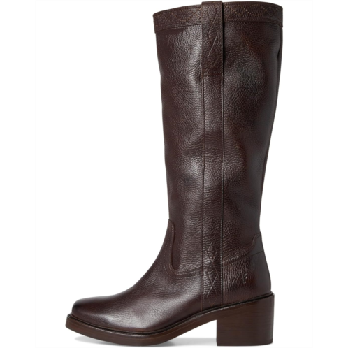 - The intricate Woodstock stitching detail gives the Frye Kate Pull-On boots an artisanal flair that comes to life on their leather upper. These boots have a softer silhouette with their round toe design and paired with a cushioned footbed and rubber outsole, the versatile 2-inch block heels are easy to walk into while providing a flattering lift to any look. The leather lining offers added comfort. Pair with above-the-knee skirts or with straight-leg denim for year-round wear.