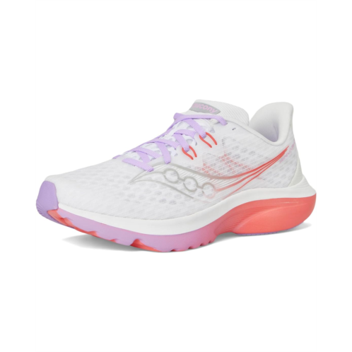 - Walk your way with ultimate comfort and a sporty style wearing the Saucony Kinvara 16, a trainer built for an ultralight, flexible and fast ride. Upgraded blend of PWRRUN, with more energy return and tougher construction against daily wear. The new geometry features a lower sidewall and straighter medial midfoot, designed for a smoother transition and added comfort as you pick up the pace. The EVA insole with new SRS sockliner offers step-in comfort you can't deny, while the breathable and lightweight upper mesh with a 3D molded heel cup offers a comfortable and secure heel fit. The lace-up closure ensures a secure fit on the go.