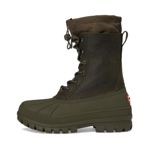 - The ultimate all-weather essential: Hunter Skylar. Crafted with a premium leather upper, these mid-calf boots offer a sleek and versatile design that's perfect for elevating your everyday look. Featuring a nylon gusset for extra protection, they effortlessly shield you from the elements, while the waterproof construction ensures you stay dry whether it's raining or shining. The durable rubber outsole delivers steady traction, and the round toe keeps the fit timeless and comfortable. A zippered side closure adds ease to your on-and-off routine, making them as practical as they are chic. Lined with soft polyester for added comfort, the Hunter Skylar booties are the ultimate blend of fashion and function.