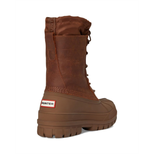 - The ultimate all-weather essential: Hunter Skylar. Crafted with a premium leather upper, these mid-calf boots offer a sleek and versatile design that's perfect for elevating your everyday look. Featuring a nylon gusset for extra protection, they effortlessly shield you from the elements, while the waterproof construction ensures you stay dry whether it's raining or shining. The durable rubber outsole delivers steady traction, and the round toe keeps the fit timeless and comfortable. A zippered side closure adds ease to your on-and-off routine, making them as practical as they are chic. Lined with soft polyester for added comfort, the Hunter Skylar booties are the ultimate blend of fashion and function.
