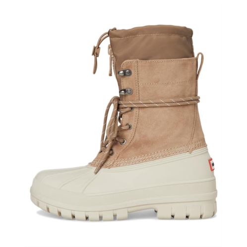 - The ultimate all-weather essential: Hunter Skylar. Crafted with a premium leather upper, these mid-calf boots offer a sleek and versatile design that's perfect for elevating your everyday look. Featuring a nylon gusset for extra protection, they effortlessly shield you from the elements, while the waterproof construction ensures you stay dry whether it's raining or shining. The durable rubber outsole delivers steady traction, and the round toe keeps the fit timeless and comfortable. A zippered side closure adds ease to your on-and-off routine, making them as practical as they are chic. Lined with soft polyester for added comfort, the Hunter Skylar booties are the ultimate blend of fashion and function.
