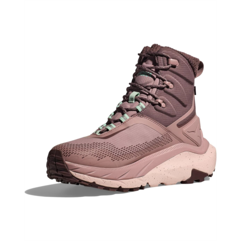- Cold-weather rated to -32°C/-25°F, the Hoka Women's Kaha 2 Frost GTX shoes feature a waterproof GORE-TEX membrane that keeps your feet dry. These hiking boots are made of a 91% recycled polyester ripstop mesh upper that is styled with an easy on-off top-hook lacing for a secure fit. The polyurethane insole, dual-density CMEVA midsole with HUBBLE heel and SwallowTail, and an injection-molded TPU heel cap make them a comfortable and durable choice. Designed with 400g PrimaLoft Gold insulation and an aluminum reflective foil in the sockliner bottom, these ankle boots will fill your adventures with superior comfort and protection.