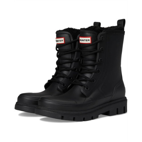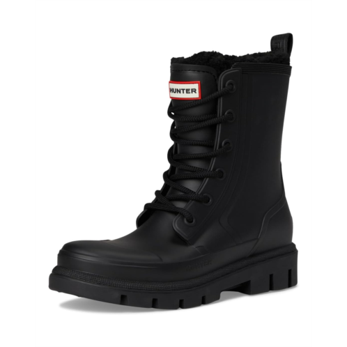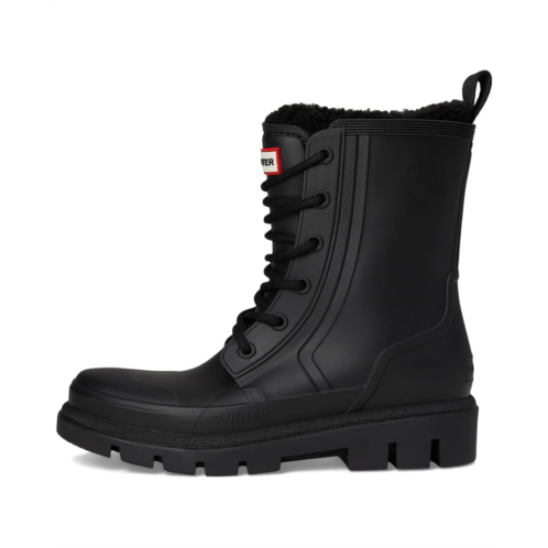 - Ready for whatever the day brings, the Hunter Dianas promise unmatched comfort, warmth, and weatherproof durability. Designed for both fashion and function, these mid-calf lace-up boots feature a durable synthetic upper and cozy faux fur lining that wraps your feet in warmth. The cushioned PU insole ensures all-day comfort, while the sturdy synthetic rubber outsole provides reliable traction for wherever your day leads. Built to take on the elements, the Hunter Dianas are waterproof, keeping your feet dry through rain, snow, or puddles without compromising on style. The round toe design and classic lace-up closure add timeless appeal, making them versatile enough to pair with everything from jeans to leggings.