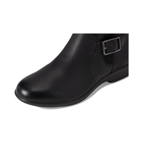 - The Carolyn bootie by Dansko is your go-to for polished style and feel-good function. Crafted with high-quality leather uppers and chrome-free leather lining, it's as breathable as it is beautiful. The textured inlay and side buckle bring on-trend flair, while the pull-on design, goring panel, and easy side zippered offer no-fuss entry. Inside, a removable PU footbed with Dansko Natural Arch technology delivers lightweight cushioning and all-day support, so you can strut, stroll, or slay without slowing down. The ankle-high silhouette, closed toe, and durable rubber outsole make it perfect for everyday elegance and nonstop wear.