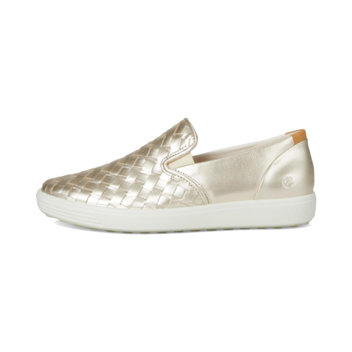- Experience the simple joy of stepping out in style with ECCO Soft 7 Woven Slip-On 3.0 Sneaker. Designed for the modern woman, these slip-ons come with an efficient elastic closure. Comfy and chic, these are ideal companions for your everyday adventures. Crafted from leather upper, nylon lining, and leather insole, this pair of shoes features round toe, ECCO FLUIDFORM provides soft, flexible and fluid movement within a naturally supportive anatomical fit, removable, leather-covered insole for added comfort and optional extra width when taken out. The elasticized panels ensure the shoe is easy to slip on, lined in textile for softness and breathability.