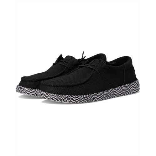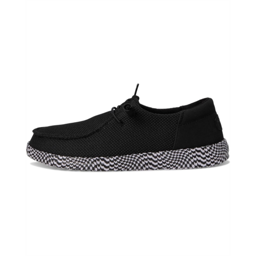 - Easy, breezy, textile makes this Hey Dude Wendy Funk Warped Geo slip-on sneaker ready to roam. Easy-on elastic laces, EVA outsole and removable insole provides go-to comfort.