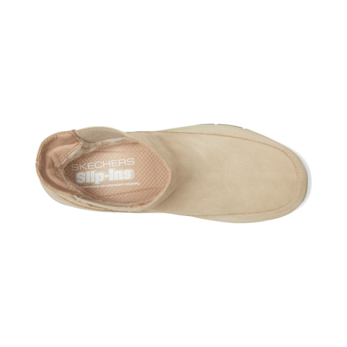- The perfect Chelsea boot meets the SKECHERS Easy Going - Casual Icon Hands Free Slip-ins. Soft suede upper in a low ankle-height slip-on casual Chelsea bootie and Skechers Air-Cooled Memory Foam cushioned comfort insole. Designed with our Heel Pillow, this cold-weather boot features a 3M Scotchgard treated upper and chenille lining.
