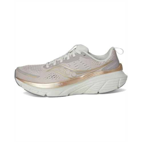- Power through your day sporting the Saucony Guide 18, a perfect fusion of style, support, and all-day comfort. Featuring a premium leather upper for durability and a sleek look, this sneaker keeps you cool with its breathable mesh design and soft nylon lining. The EVA insole cradles your foot with plush comfort, while VERSARUN cushioning absorbs impact, reducing pressure for a smooth ride. A sturdy rubber outsole offers superior grip and durability, keeping up with your every move. With a offset and a secure lace-up closure, this shoe is built for effortless, stable strides-wherever life takes you!
