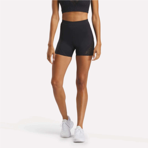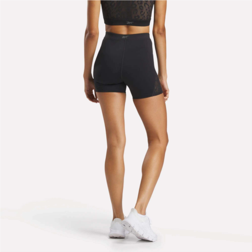 From burpees to sprints, you'll be ready for anything in these women's Reebok bike shorts. The high-rise waist gives you a hugged-in feel and secure fit. Leopard print helps you bring fierce energy to your workout routine.