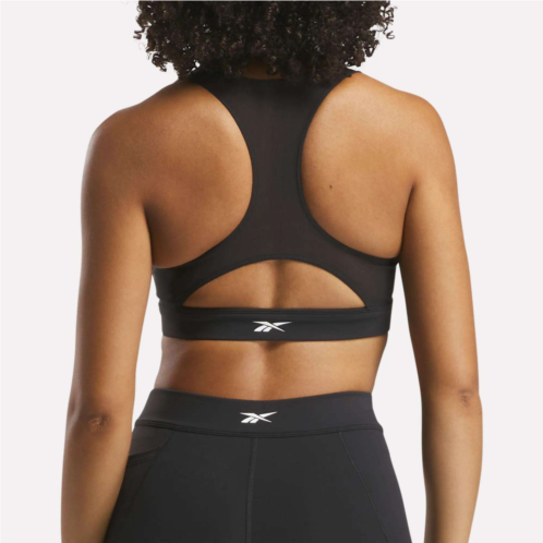 This medium-support sports bra from Reebok helps you handle any workout, anytime. Made of soft Nylux fabric with a second-skin feel, it has inner cups for shaping and support. The racer back design gives you freedom of movement so you can ace every push up and overhead lift.