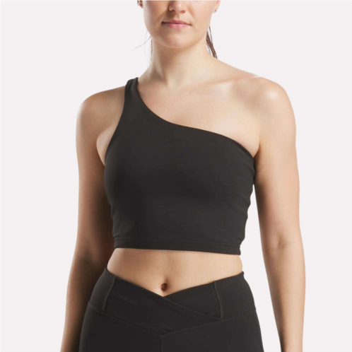 Tap into your breath and focus on your movement in this women's Reebok yoga tank top. Sweat-wicking and stretchy, it helps you make you make the most of your time on the mat. The final touch? An asymmetrical strap detail. You know, for style.