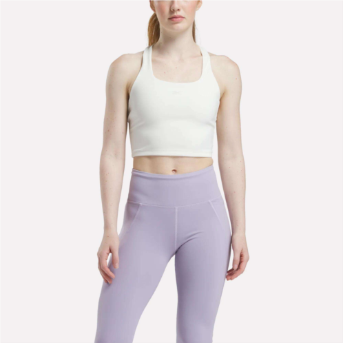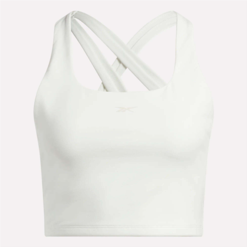 When you show up for your workout, you're showing up for yourself. This women's Reebok tank top is soft with a cropped silhouette and is lined in front and back for coverage and support. A Vector-inspired strappy back makes it sporty and stylish.