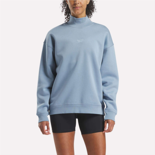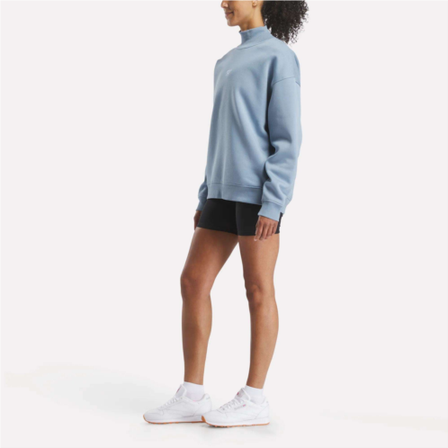 Wrap yourself in feel-good vibes with this women's Reebok sweatshirt. Soft brush-back fleece keeps you warm on chilly days, whether you're lounging or heading out. Extra length means extra coverage, and you get a roll neck for an extra-cozy touch.