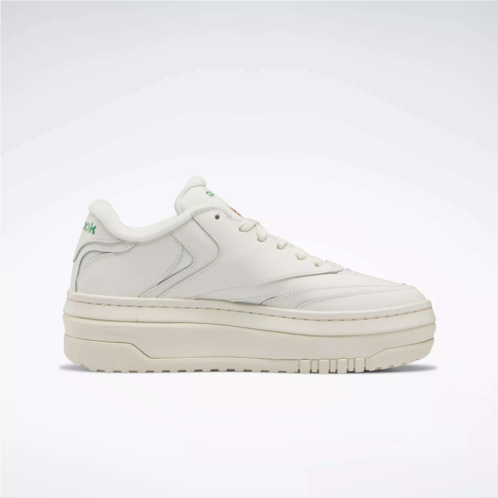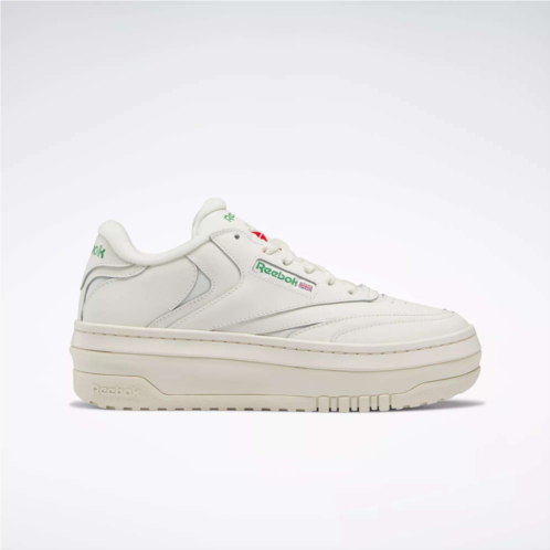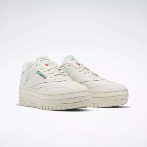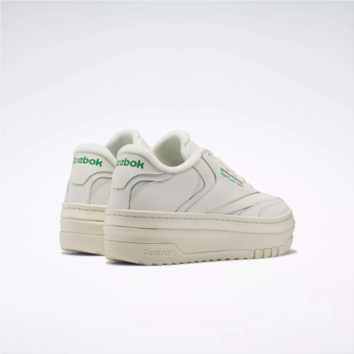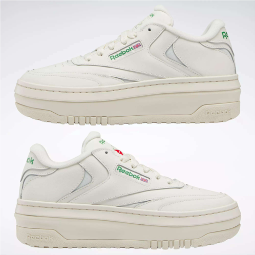 Being extra is a good thing. These women's Club C Extra shoes prove it. An exaggerated platform midsole with a geometric design gives you an amplified look. Don't miss the outsole which has a 3D tennis racket effect. Subtle hits of iconic color on the leather upper seal the deal.