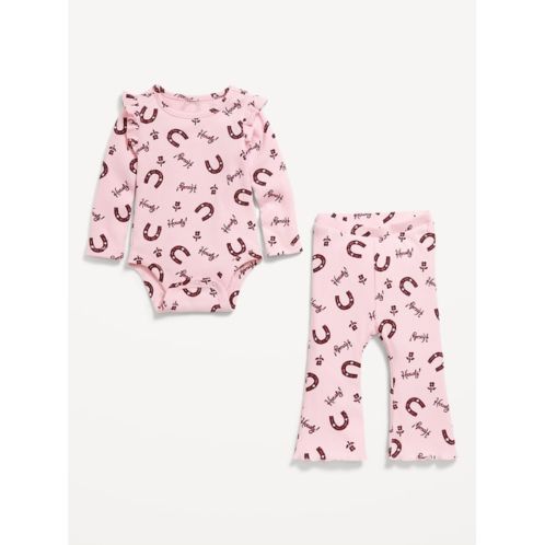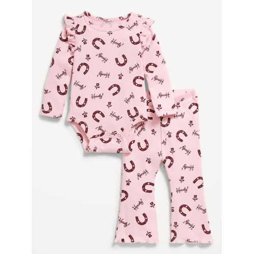 [US] OldNavy Printed Ribbed Ruffle-Trim Bodysuit and Pants Set for Baby
