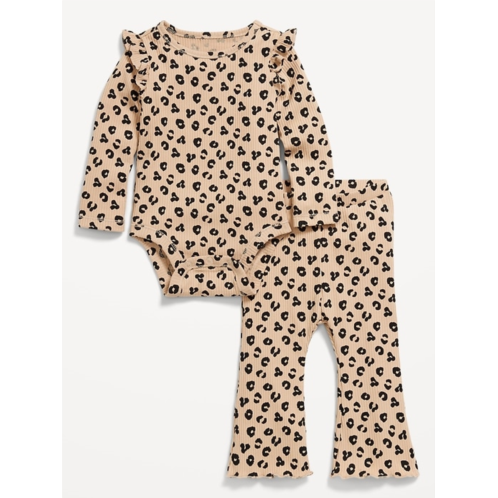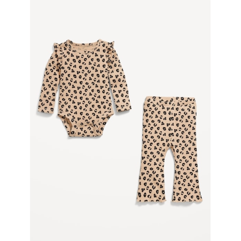 [US] OldNavy Printed Ribbed Ruffle-Trim Bodysuit and Pants Set for Baby