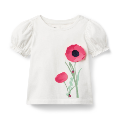 Grow your wardrobe with our pure cotton top designed with flower appliques and embroidered ladybugs too. Plus, puff sleeves and ruffle cuffs.