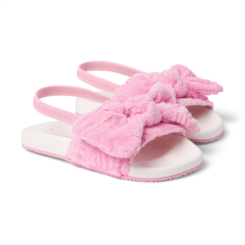 - For lounging by the pool in style, or just because, slip into our soft terry palm print slide designed with a bow detail.