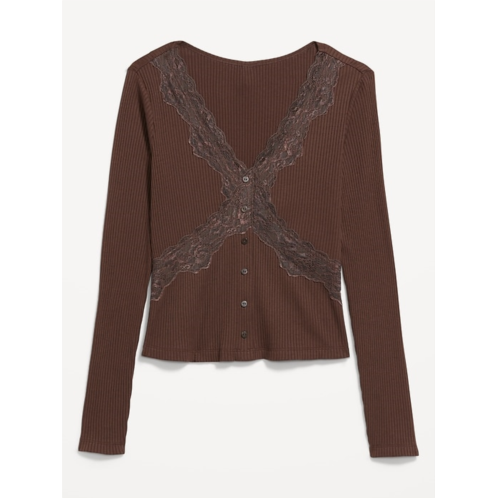 [US] OldNavy Lace-Trim V-Neck Ribbed Top