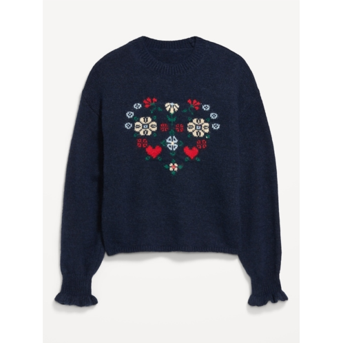 [US] OldNavy Loose Crew-Neck Wool-Blend Graphic Cropped Sweater