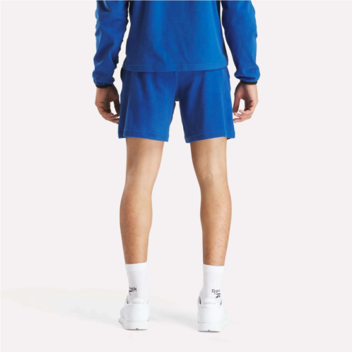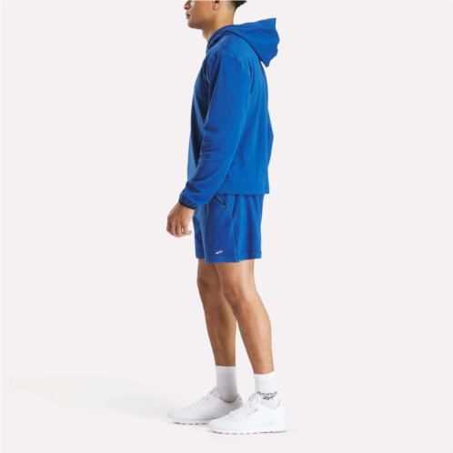 These men's Reebok shorts keep your style rooted in sport no matter what's on the day's schedule. Fleece fabric has a soft hand feel and keeps you comfortable through everything from barbell workouts to helping a friend move a couch. A drawcord-adjustable waist dials in the fit.