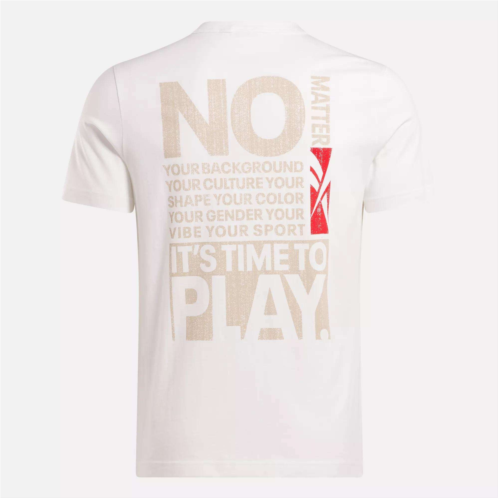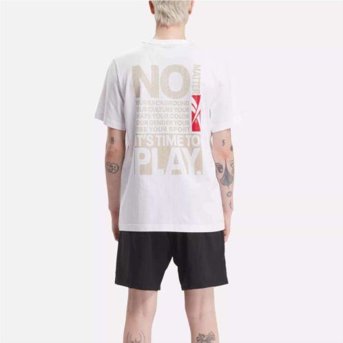 It doesn't matter who you are. Your place is in the game. This Reebok tee inspires with a message that welcomes all. It's made from soft cotton jersey with a ribbed crewneck for a classic fit. Wear it on rest days or any day you feel your positive energy come alive.