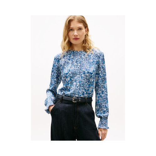 Tommy Hilfiger women's shirt. Lightweight with an effortless drape, this shirt transitions easily from work to weekend. The standout floral print refreshes your wardrobe with pattern and color.