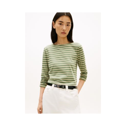 Tommy Hilfiger women's T-shirt. Made from a premium cotton blend, this long-sleeve tee is designed in a boatneck silhouette. Lightweight, stretchy and breathable, it’s an effortless essential for everyday wear.