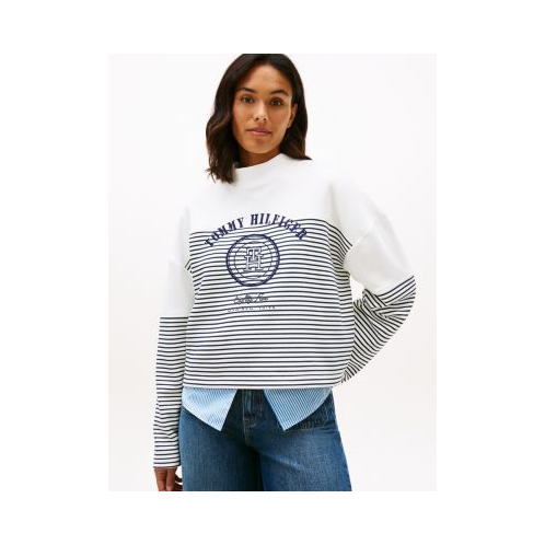 Tommy Hilfiger women's sweatshirt. Our timeless nautical stripe sweatshirt is restyled for today in a fresh cropped cut with our signature logo. Made from soft brushed-back fleece with a smooth feel, it’s an easy and comfortable layer.