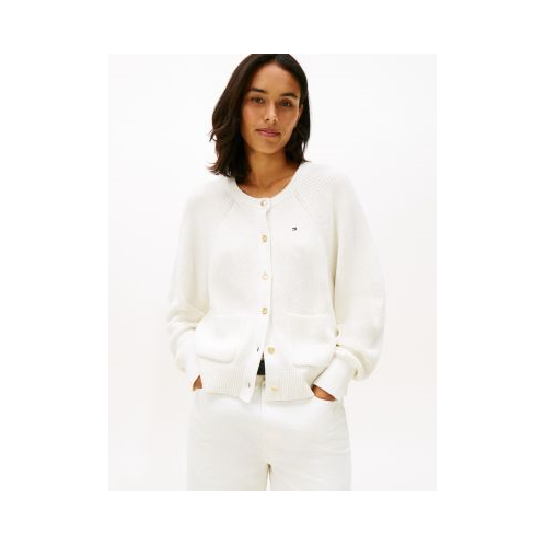 Tommy Hilfiger women's sweater. Our relaxed cardigan is made from soft, combed cotton in a large-rib knit. Polished gold-tone buttons and structured patch pockets add an elevated feel to this versatile layer.