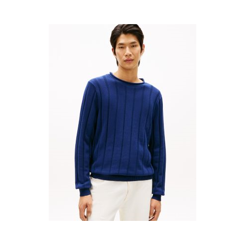 Tommy Hilfiger men's sweater. Defined by an understated rolled neckline and a textured rib-knit finish, this sweater is a wardrobe staple. Made from combed cotton, it stays soft, breathable and durable, wash after wash.