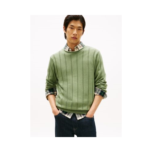 Tommy Hilfiger men's sweater. Defined by an understated rolled neckline and a textured rib-knit finish, this sweater is a wardrobe staple. Made from combed cotton, it stays soft, breathable and durable, wash after wash.
